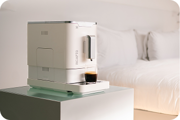 Cafeteras compactas, elegantes y prácticas que preparan un café recién molido en tan solo un clic. Son ideales para habitaciones de hotel.